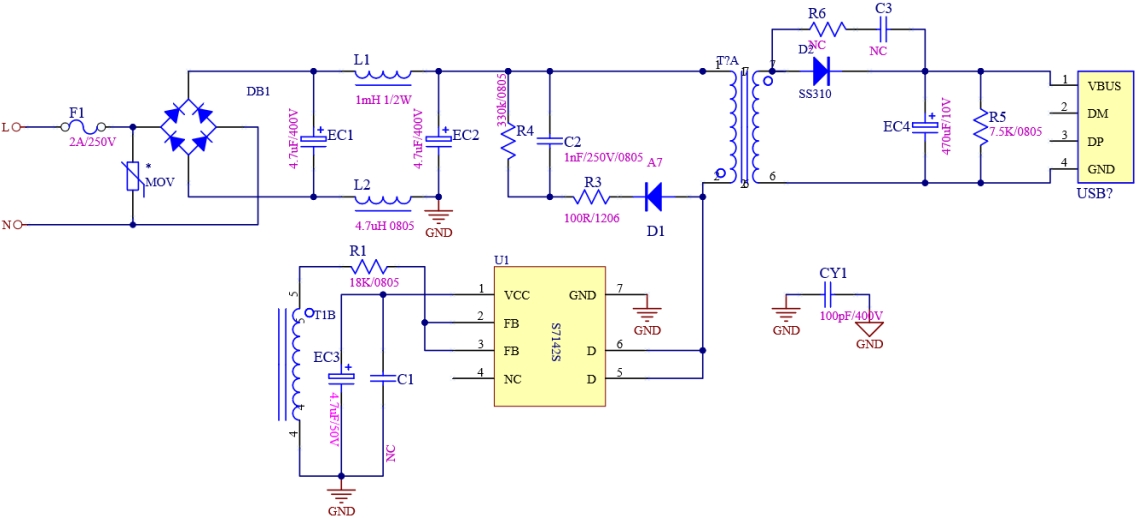 S7142S晶豐12V400mA電源芯片過認證版本參考設計