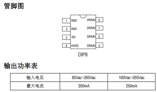 • 優勢:內部集成650V高壓功率管,內置CS電阻,無需外部補償元件,即可實現優異的線性調整率和負載調整率。不需要反饋環路,提高了集成度和系統可靠性。采用了抖頻和智能軟驅動技術,進一步優化了EMC性能。
