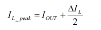 其中,ΔIL=IL×r,IL為最大負(fù)載電流,F(xiàn)SW為開(kāi)關(guān)頻率。在最大負(fù)載條件下,芯片工作在CCM模式,峰值電流公式為: