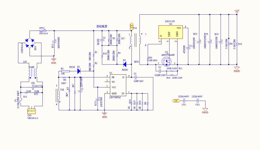 LP3799FAC是一款設(shè)計(jì)用于提供12V4A輸出的48W電源方案。它采用了原邊控制技術(shù),內(nèi)部集成了高壓功率管,使得整個(gè)電源方案在保持小體積的同時(shí),能夠提供較大的功率輸出。這種設(shè)計(jì)特別適合于空間受限但又需要較高功率輸出的應(yīng)用場(chǎng)景,如充電器、適配器和其他恒壓恒流應(yīng)用場(chǎng)合。