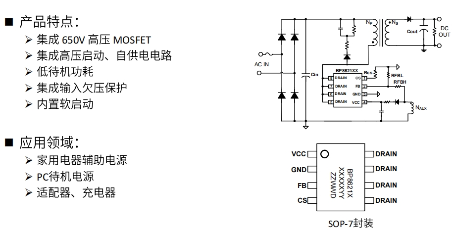 • 集成 650V MOSFET:減少外圍元件,降低 BOM 成本。