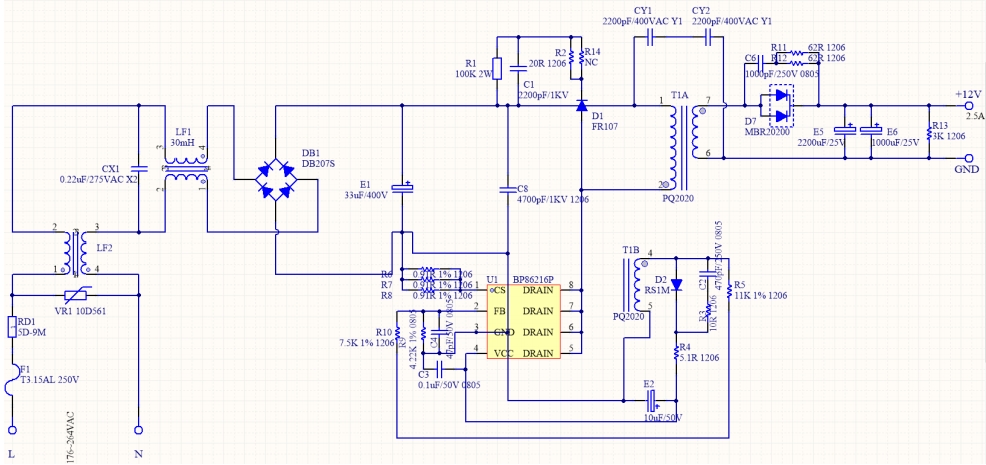 在現代家用電器市場中,電源適配器的效率和穩定性至關重要。今天,我們將深入剖析一款基于 BP86216P 的 12V2.5A 電源方案,其實測效率超過 85%,堪稱 30W 功率段的“小鋼炮”。