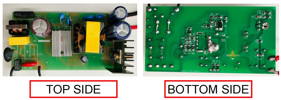 從實物圖可以看出,BP86216P 的電路板設計簡潔明了。所有元件均采用貼片工藝,確保了生產的高效性和一致性。變壓器和電解電容的體積適中,能夠適應大多數小型電源適配器的外殼。