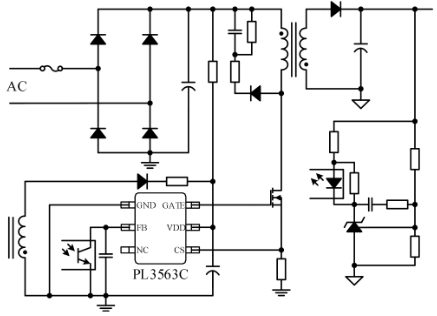 PL3563C 是一款低成本、高性能的電流模PWM控制芯片,其優(yōu)異的性能可滿足小功率開關(guān)電源的低功耗要求。芯片的啟動電流典型值僅5uA,可減小啟動電路損耗;而較低的工作電流也可以提高系統(tǒng)的效率;芯片內(nèi)置的“無噪音綠色模式”同樣能夠提高系統(tǒng)的效率,同時這種綠色模式能使開關(guān)電源滿足嚴格的能源損耗要求。