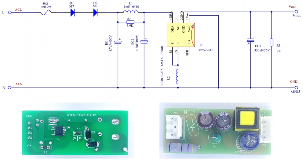 BP85226D是一款高性能、高集成度、低待機功耗的AC-DC開關電源芯片,適用于全電85~265VAC輸入的Buck、Buck-Boost變換器拓撲應用,SOP-7封裝,內(nèi)部集成了650V高壓MOSFET,高壓啟動和自供電電路、電流采樣電路、電壓反饋電路以及續(xù)流二極管,采用先進的控制技術,無需外部VCC電容和環(huán)路補償,即可實現(xiàn)優(yōu)異的恒壓輸出特性,適用于電飯煲,空氣炸鍋,智能門鈴/插座等小家電。