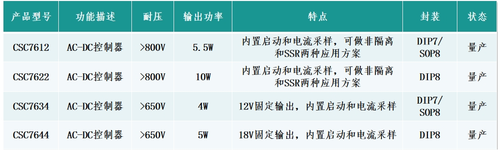 內置800V功率MOSFET:CSC7622內部集成了一個800V的功率MOSFET,這有助于減少外部元件的需求,同時提高電源效率。