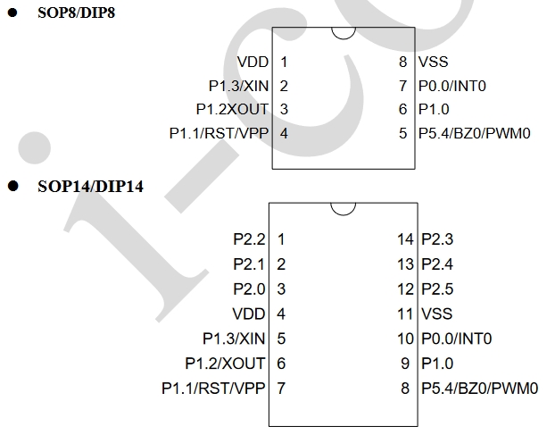 振蕩器:內部高速RC振蕩器,為微控制器提供時鐘信號。