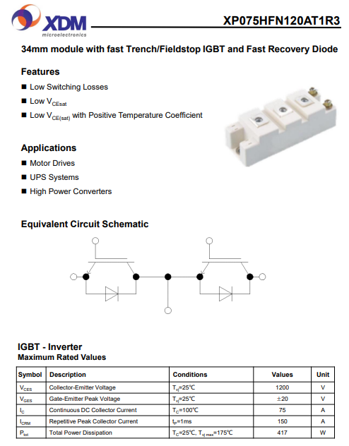 XP075HFN120AT1R3 芯達(dá)茂 國產(chǎn)IGBT 功率模塊 75A 1200V