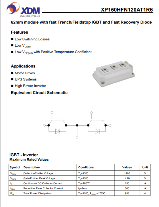 XP150HFN120AT1R6 芯達茂 國產IGBT功率模塊150A 1200V 62mm