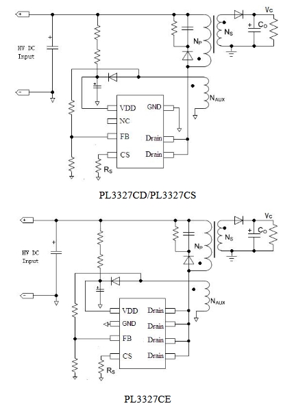 盡管兩款芯片都適用于小于18W的AC/DC反激式開(kāi)關(guān)電源,但它們的封裝差異可能會(huì)影響它們?cè)谔囟☉?yīng)用中的適用性。例如,PL3327CE的SOP8封裝可能更適合于對(duì)空間要求較高的便攜式設(shè)備,如手機(jī)充電器和數(shù)碼相機(jī)充電器。而PL3327CD的DIP7封裝可能更適合于對(duì)成本敏感且空間要求不那么嚴(yán)格的應(yīng)用,如一些小型電源適配器。